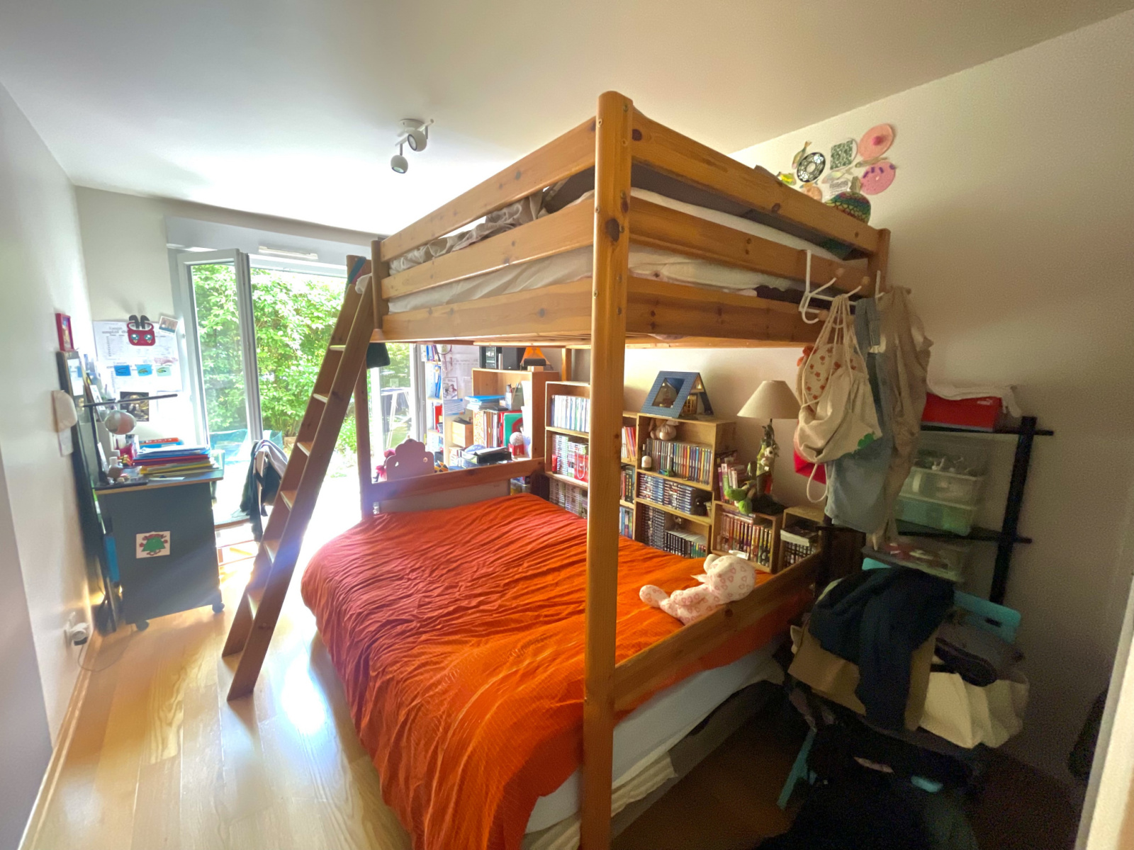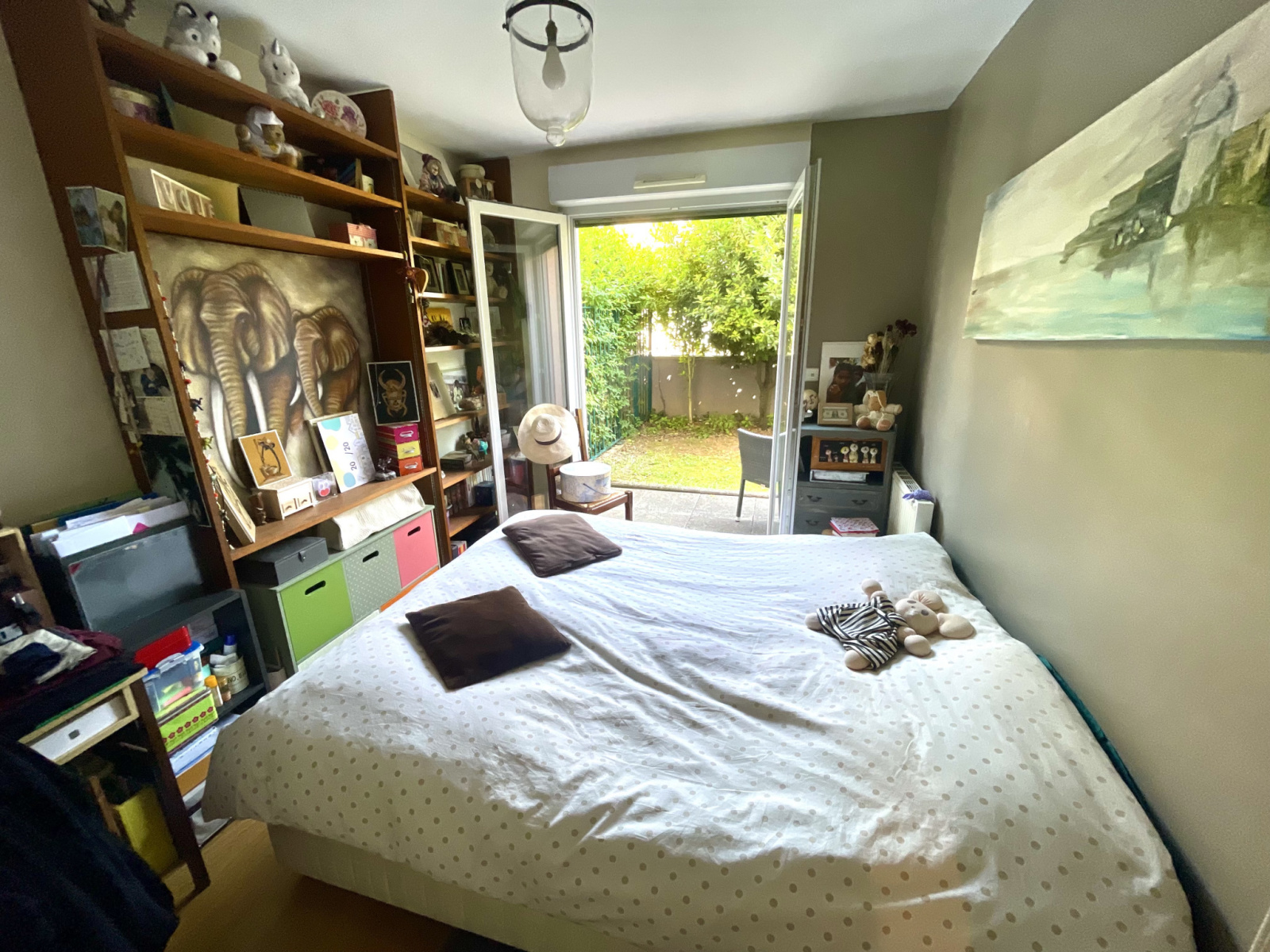 L'appartement se compose d'une entrée avec placard, d'un lumineux séjour ouvrant sur la terrasse et le jardin, d'une cuisine aménagée, de deux chambres avec placards, d'une salle de bains et d'un WC séparé.