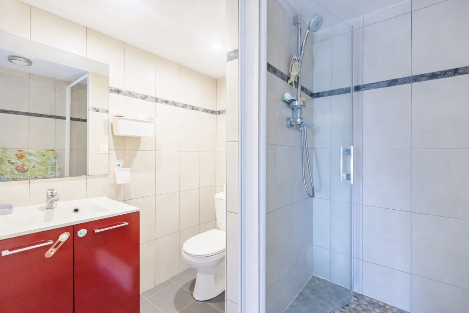 À l’étage, vous découvrirez un espace de vie lumineux exposé sud-ouest donnant sur un balcon, avec une cuisine moderne entièrement aménagée et équipée, trois chambres confortables et une salle de bains avec toilettes.