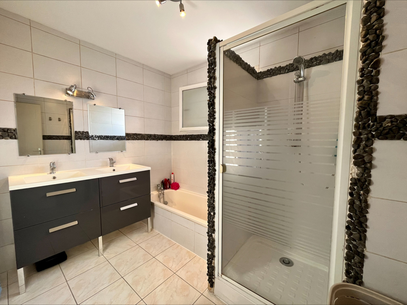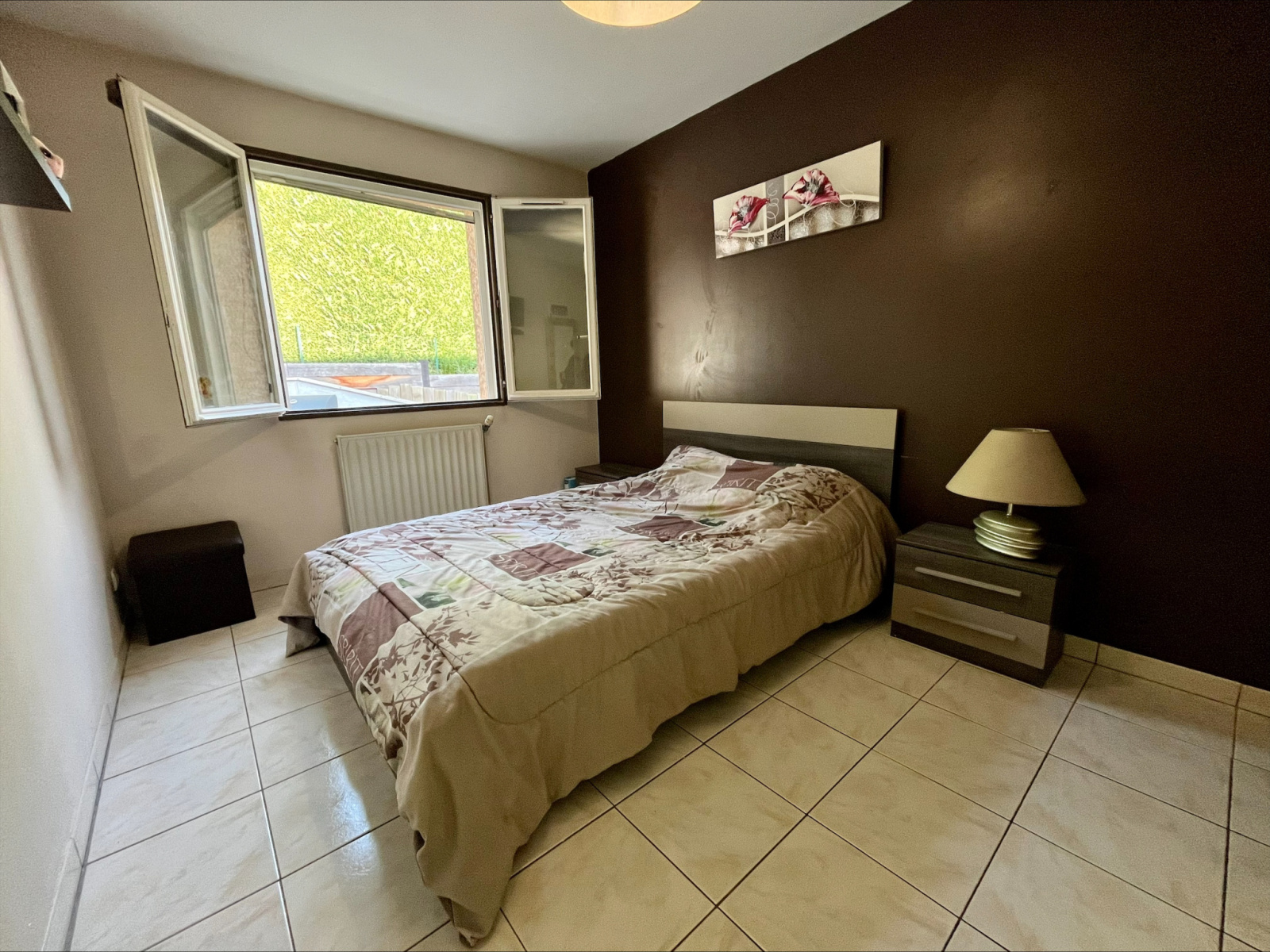D’une superficie d'environ 80 m², élevée sur sous-sol complet, la maison se compose d'une belle pièce de vie lumineuse, avec accès au jardin et aux deux terrasses, d'une cuisine ouverte et équipée datant de 2017, de deux chambres avec placards muraux, d'un WC et d'une salle de bain, double vasque, avec douche.