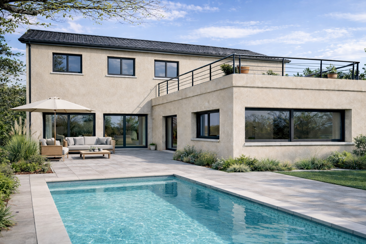 Craponne (69290)FRANCHISE OUEST IMMO vous propose en exclusivité, sur la commune de Craponne, en plein cœur du bourg et au calme en fond d'impasse, cette magnifique maison livrée hors d'eau hors d'air de 145m².