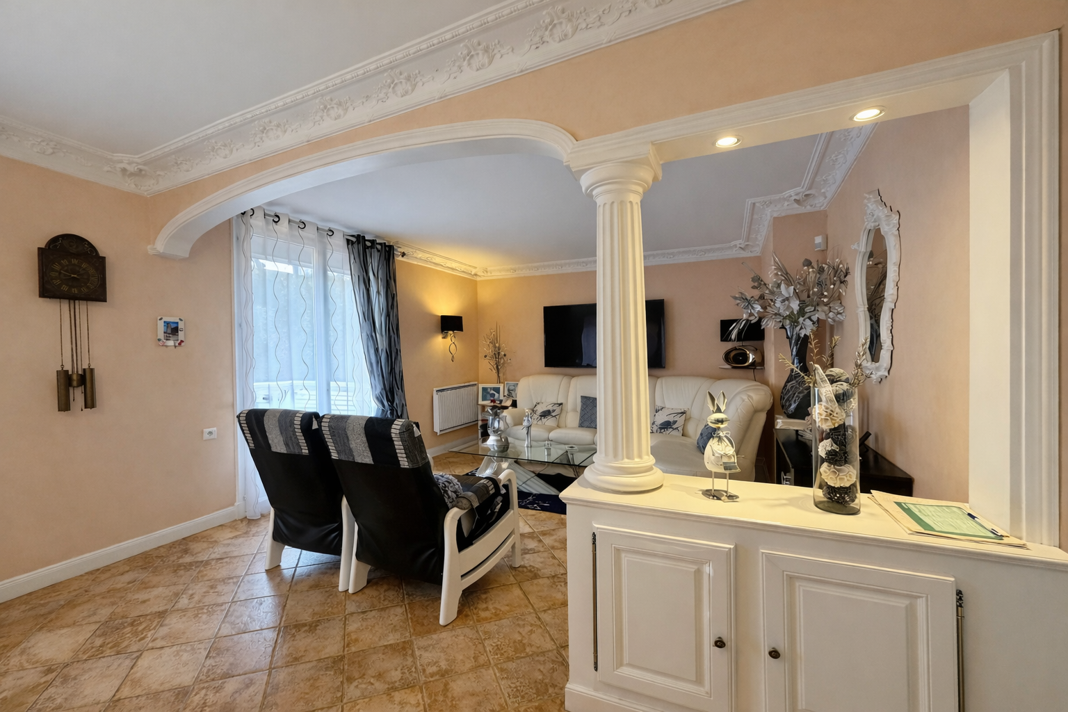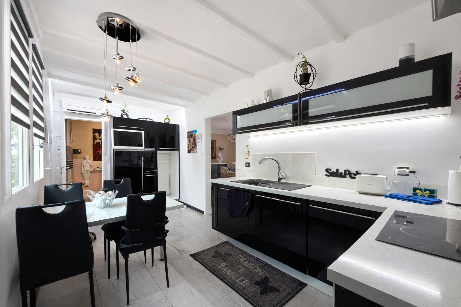 Cette maison familiale propose un bel espace de vie exposé Ouest avec une cuisine refaite entièrement qui peut s'ouvrir sur le séjour, une arriere cuisine complète très spacieuse avec de nombreux rangements.