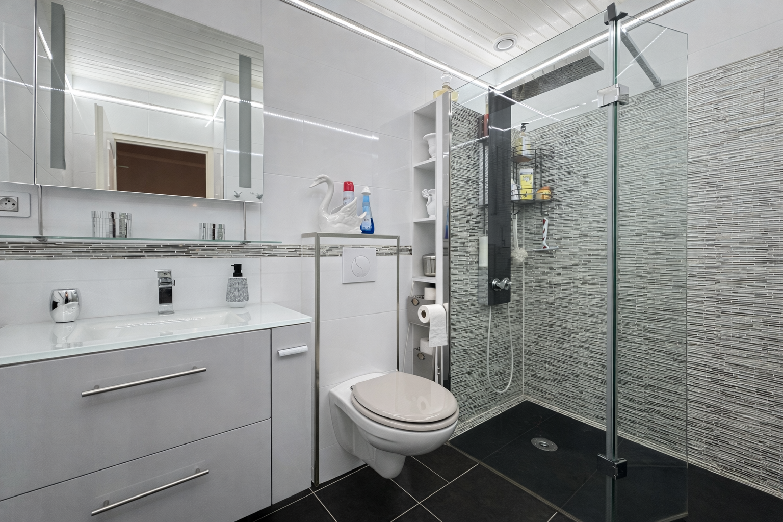 L'espace nuit est composé de 4 belles chambres avec rangements, d'une salle de bains ainsi qu'une salle d'eau.