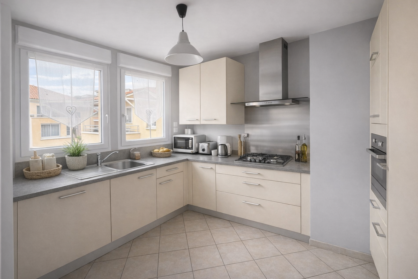 Craponne (69290)FRANCHISE OUEST IMMO vous propose sur Craponne, en plein coeur du village, à deux pas de la place du marché avec commerces, écoles, et bus TCL, dans une petite résidence de 8 lots de standing, très sécurisé, ce charmant T3 de 61m² avec balcon plein Ouest abrité.